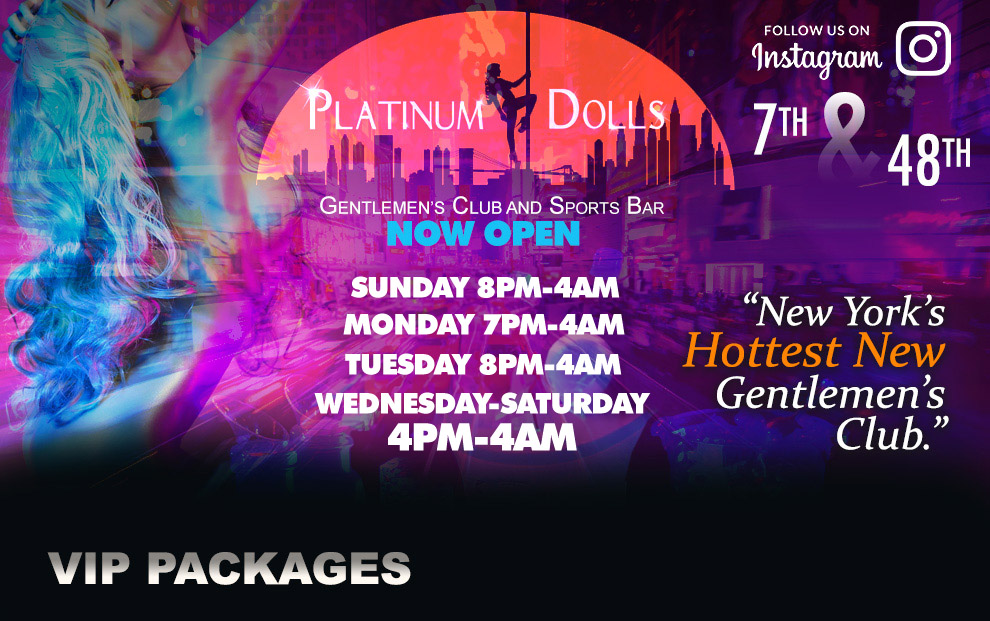 Welcome to Platinum Dolls, The Hottest Gentlemen’s Club and Sports Bar in New York City. Located in the heart of Time Square Platinum Dolls Gentlemen's Club and Sports Bar is New York's finest. Platinum Dolls Gentlemen's Club and Sports Bar DISCLAIMER: The Stock Photography Models portrayed on this website do not work at Platinum Dolls Gentlemen's Club and Sports Bar and are for illustrative purposes only. The Models do not personally endorse Platinum Dolls Gentlemen's Club and Sports Bar. The models are simply used on this website to portray types of beautiful girls that do work at Platinum Dolls. The context in which the photographs are used on this website is not intended to reflect personally on any of the Models shown in the photographs. We do not mean to imply, in any form, a working employment between the models pictured and Platinum Dolls. CONTACT US VIA EMAIL | CONTACT US BY PHONE 212-764-6969